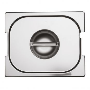 Deckel aus Edelstahl mit Aussparungen für Griffe und Schöpflöffel für GN 2/4.