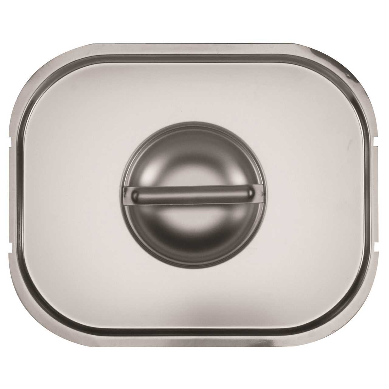 Deckel aus rostfreiem Stahl für GN 1/1 mit Aussparungen für die Griffe.
