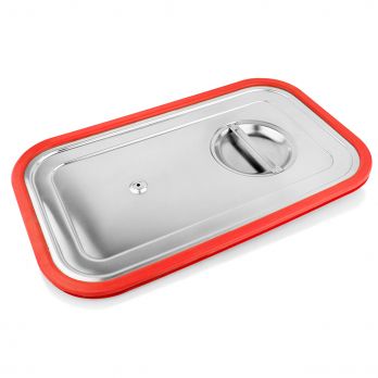 Edelstahldeckel mit wasserdichter Silikondichtung auf GN 1/1. Sie ist für das wasserdichte Abdecken von heißen Speisen in Gastro-Beh ältern bestimmt, die in isothermischen Thermoports transportiert werden.