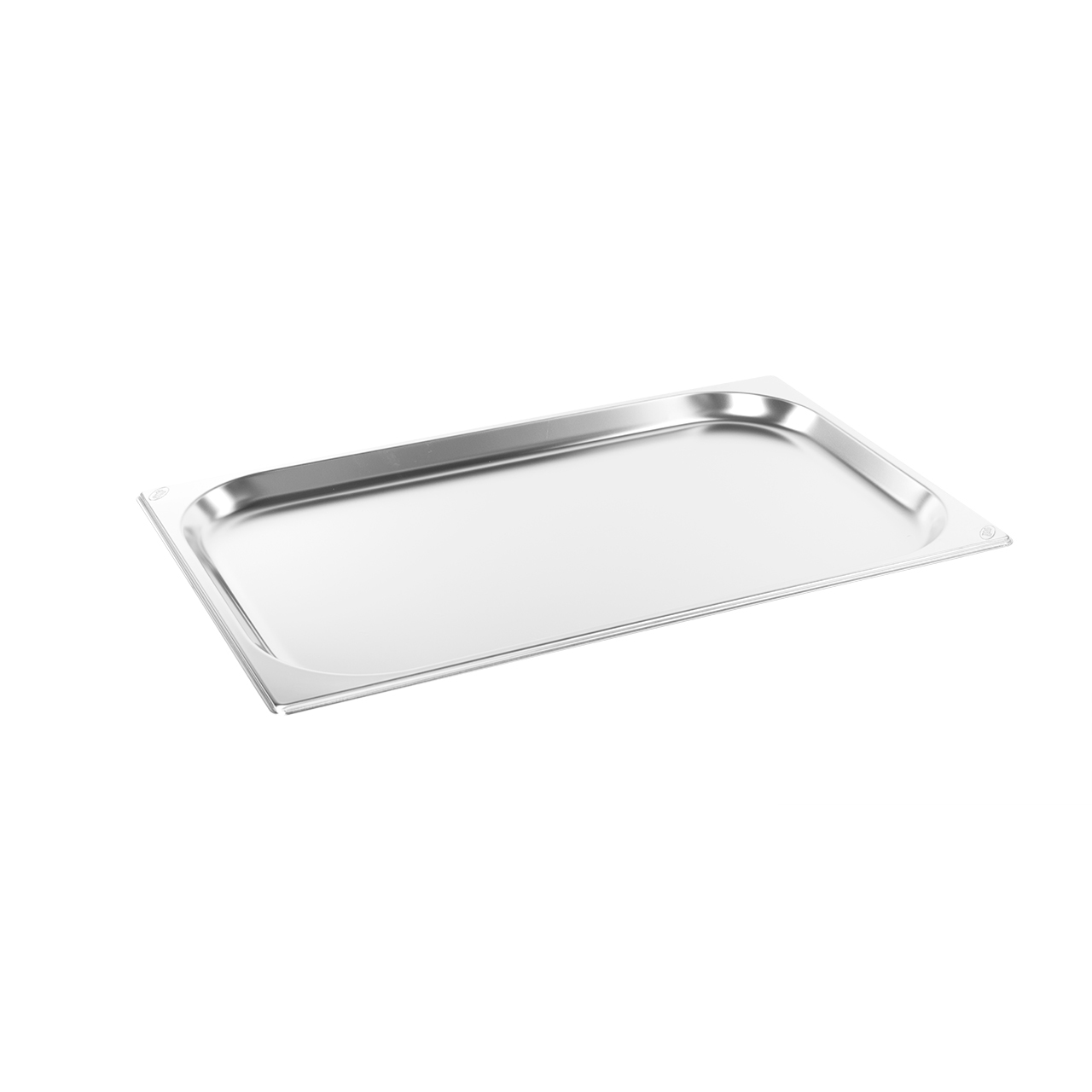 Gastroschüssel aus Edelstahl GN 1/1, Tiefe 20 mm, Materialstärke 0,6 mm.