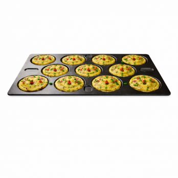 Die antihaftbeschichtete GN 1/1-Pfanne für Pfannkuchen und Spiegeleier ist für anspruchsvolle Einsätze konzipiert – Hotelfrühstück, Buffets, Catering und Großküchen. Dank der standardisierten Gastronorm-GN-1/1-Größe (530 x 325 mm) ist sie optimal mit Konvektionsöfen und professionellen Backöfen kompatibel und bietet maximale Flexibilität. Mit dieser Pfanne können Sie bis zu 11 Portionen gleichzeitig zubereiten, was die Arbeit in der morgendlichen Stoßzeit und bei der Zubereitung größerer Mengen deutlich erleichtert. Die Backform verfügt über 11 runde Mulden mit einem Durchmesser von 10 cm, die die schnelle und gleichmäßige Zubereitung von Pfannkuchen, Spiegeleiern (Ochseneiern), Omeletts, Mini-Pfannkuchen, Kartoffelpuffern und Frühstücksspezialitäten ermöglichen. Die spezielle Antihaftbeschichtung verhindert Anhaften der Speisen, sorgt für Formstabilität und ermöglicht eine einfache Reinigung, selbst bei intensivem Gebrauch.