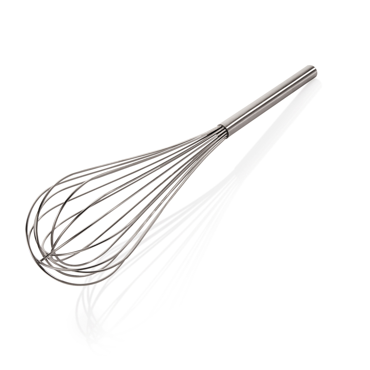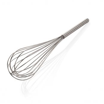 Der Schneebesen ist aus rostfreiem Stahl 18/8-18/10 gefertigt. Er hat 8 Drähte mit einer Stärke von 1,3 mm. Der geschlossene Griff isoliert das Wasser.
