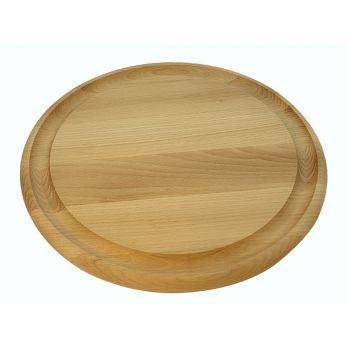 Holzschneidebrett mit Rille, rund, Durchmesser 28cm, Dicke 1,9cm, aus Buchenholz mit geölter Oberfläche