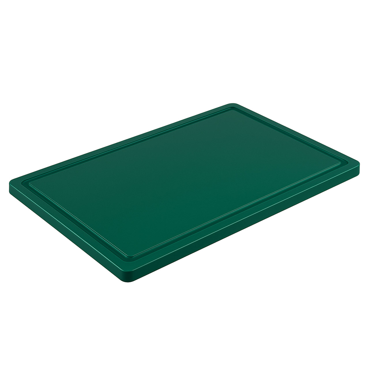 Schneidebrett / Brett aus Kunststoff mit den Maßen 53 x 32,5 cm, Höhe 2 cm. Rutschfeste Füße und Rille am Rand. Farbe: grün.