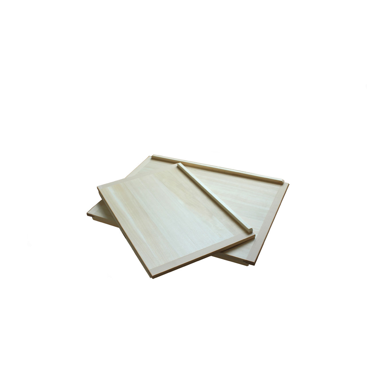 Teigroller aus Holz 60x40x1,4cm aus einer Kombination von Buche + Pappel (Linde). Oberfläche naturbelassen