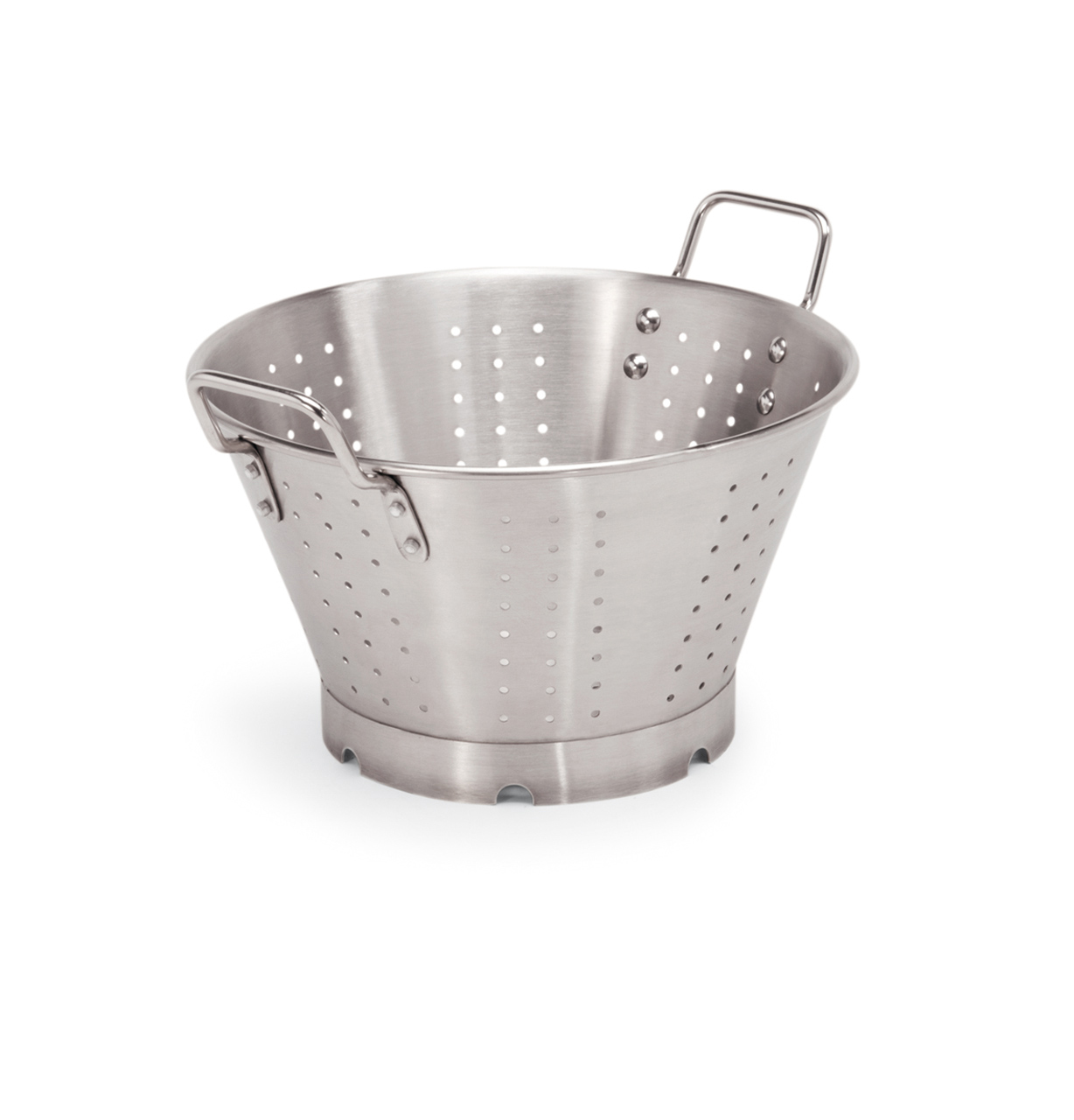 Sieb mit Bodenbügel und zwei Griffen für eine einfache Handhabung. Hergestellt aus rostfreiem, lebensmittelechtem Chrom-Nickel-Stahl . Fassungsvermögen 17 l.