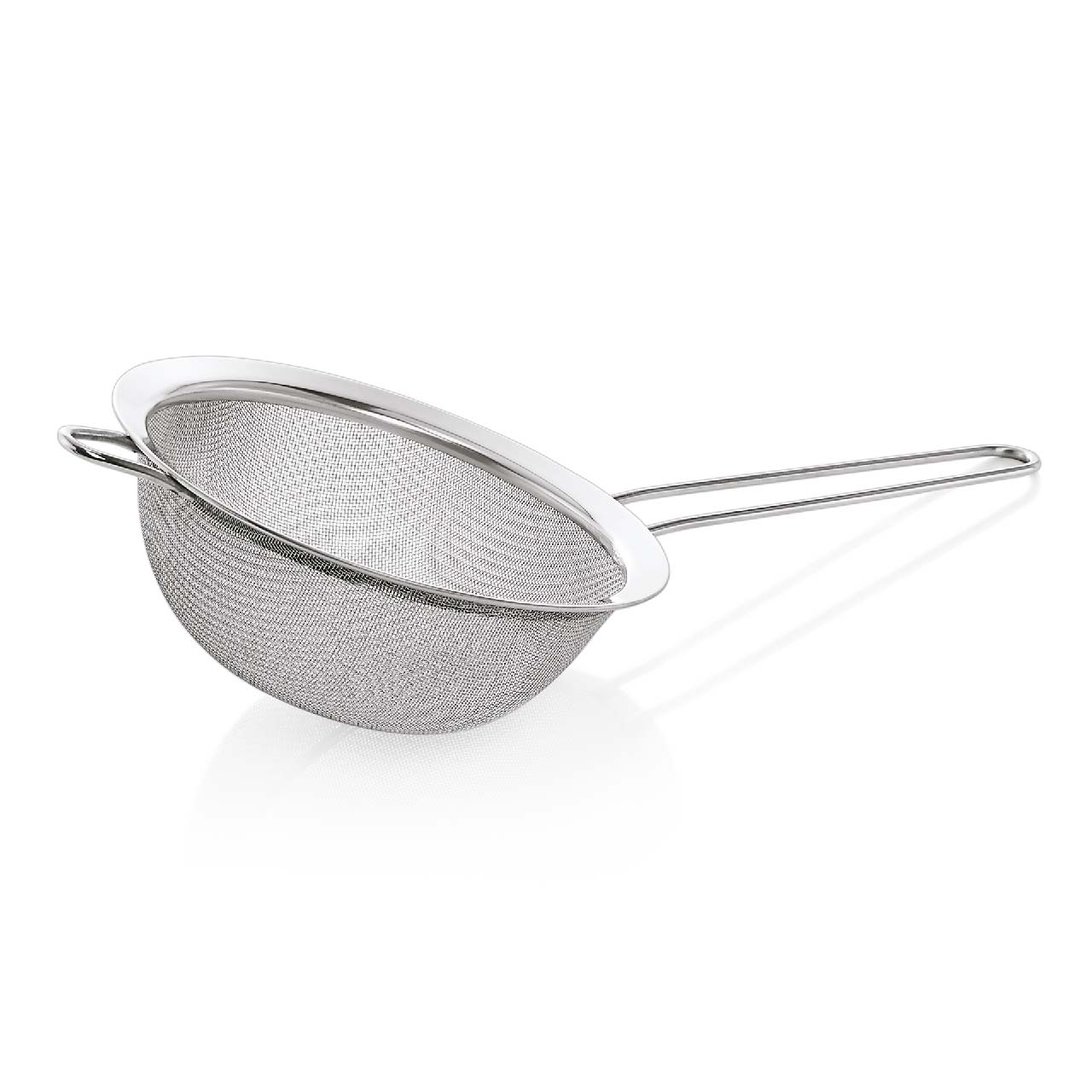 Küchensieb, Durchmesser 16 cm, Maschenweite 0,5 mm, aus Chrom-Nickel-Edelstahl. Eine ausgezeichnete Wahl für die moderne Gastronomie und den anspruchsvollen Hausgebrauch.