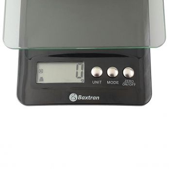 Präzise digitale Küchenwaage in modernem Design. Die Waage hat eine Glasplattform aus Sicherheitsglas mit einer maximalen Tragfähigk eit von 5 kg und einer Genauigkeit von 1g. Sie findet überall dort Anwendung, wo mit großer Präzision gewogen werden muss. Stromvers orgung: 2× AAA-Batterien (nicht enthalten).