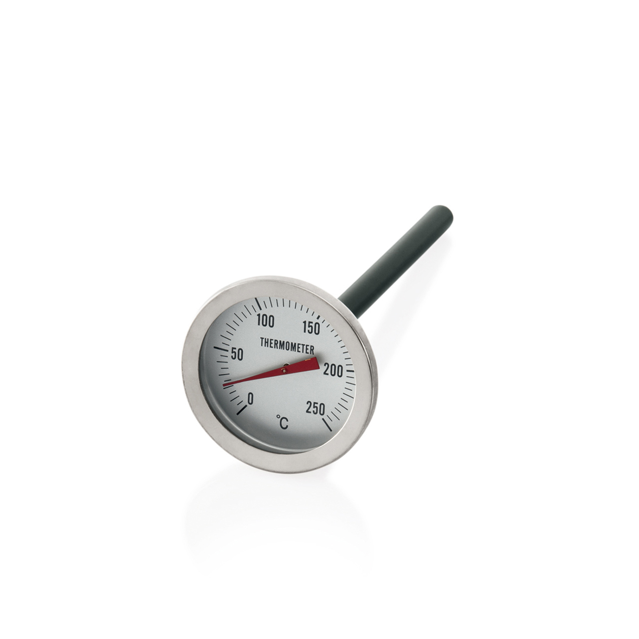 Analoges Nadelthermometer 0-250°C. Das Nadelthermometer ist aus rostfreiem Chrom-Nickel-Stahl gefertigt. Es ist für den Dauereinsatz im Backofen geeignet.