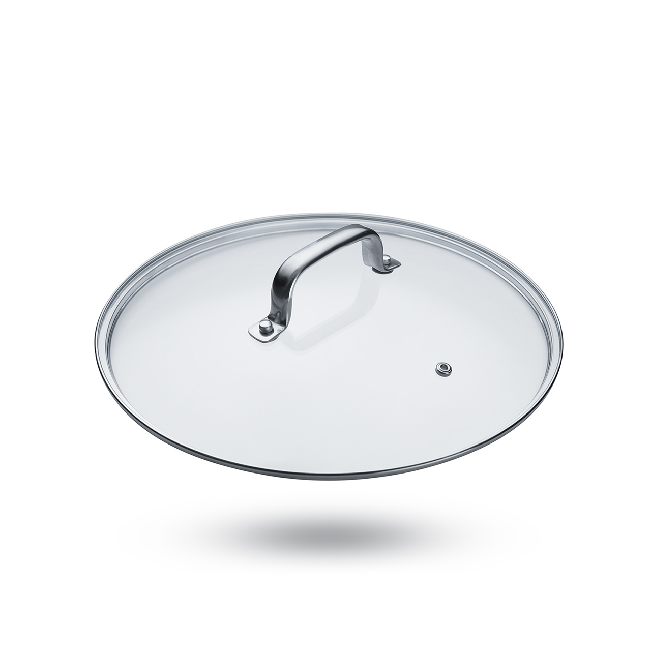 Glasdeckel 24 cm mit Edelstahlrand – hochwertiger Deckel aus gehärtetem Glas