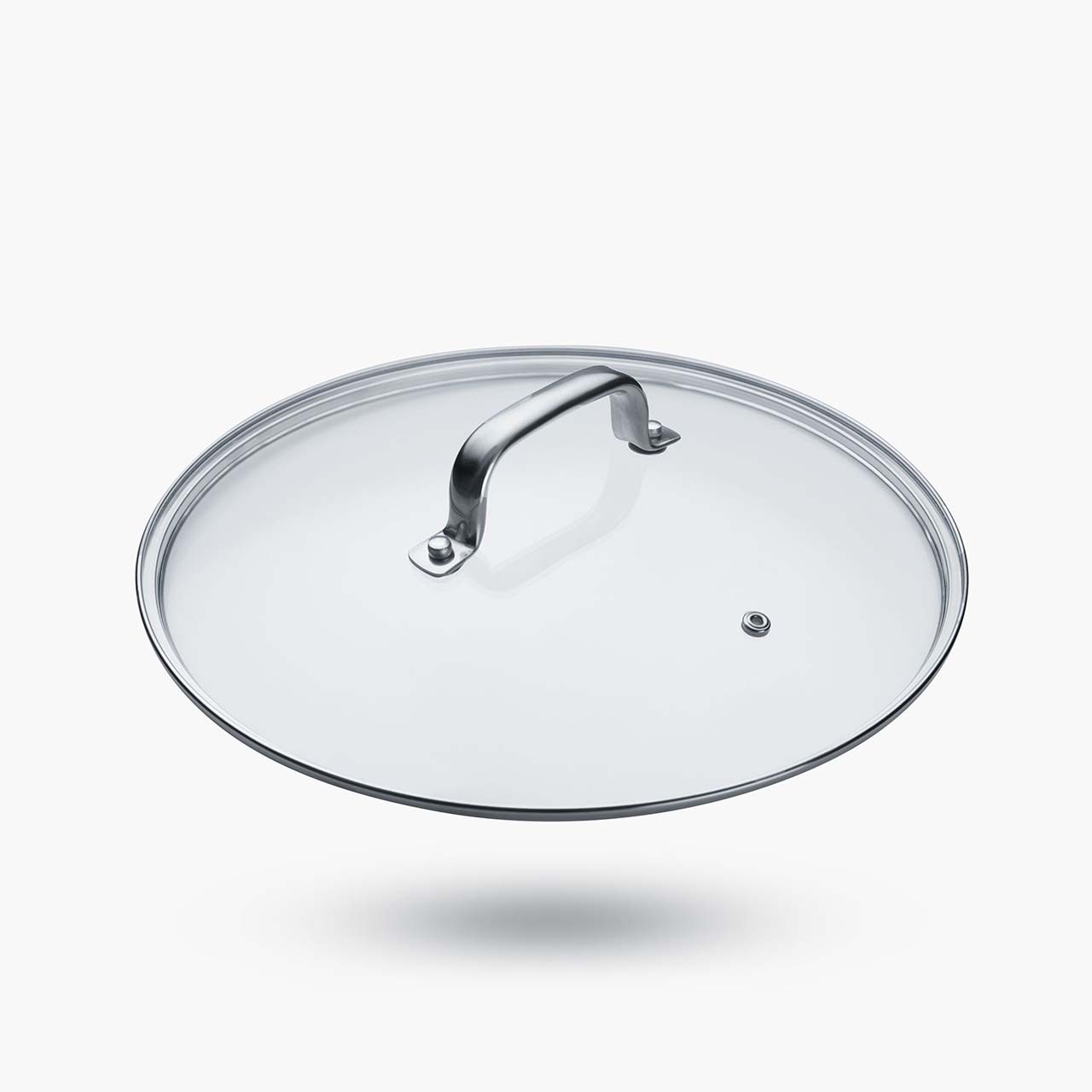 Glasdeckel 28 cm mit Edelstahlrand – robuster Deckel aus gehärtetem Glas, geeignet für Pfannen und Töpfe