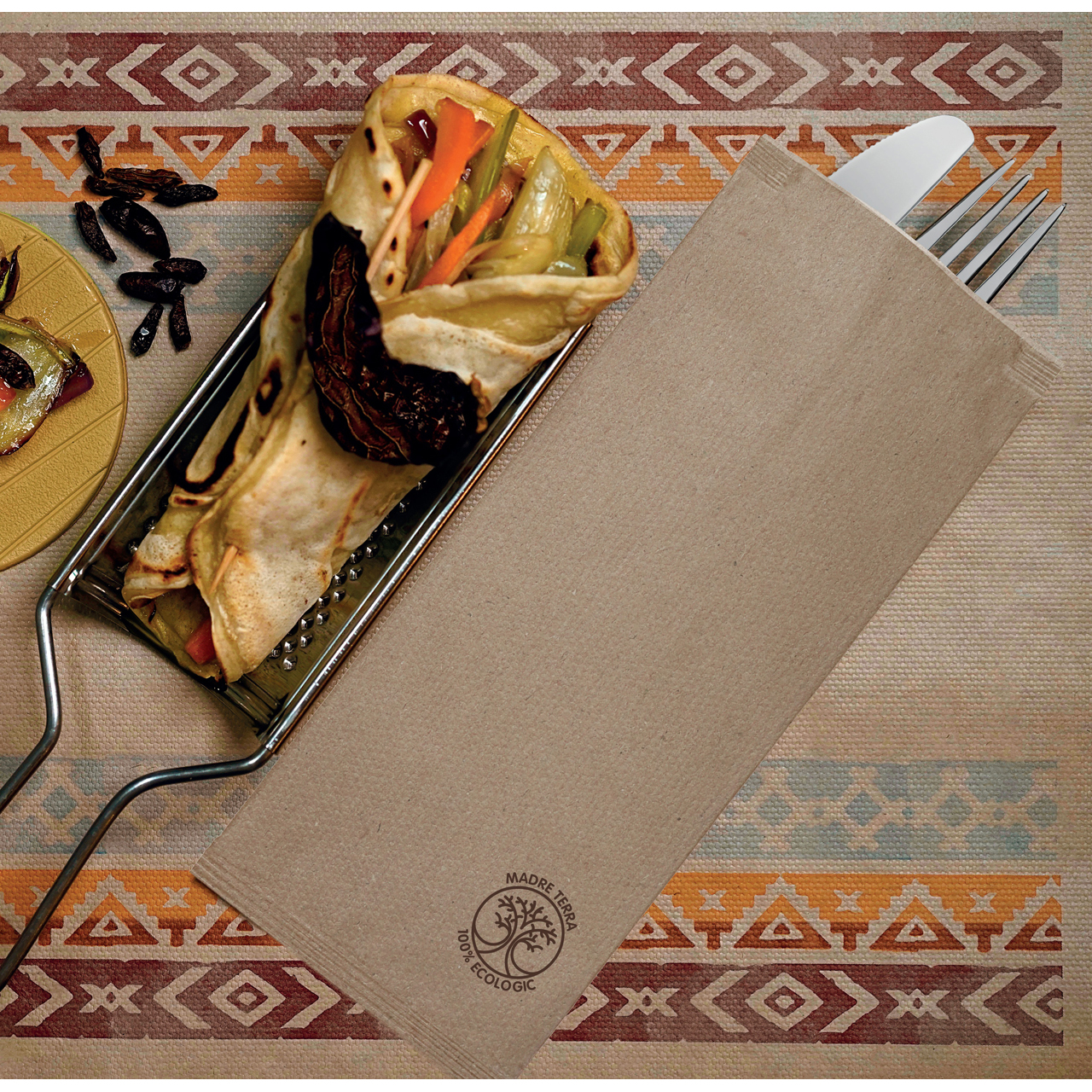 Bestecktasche 25 x 11 cm NATUR mit Serviette (125 Stck)