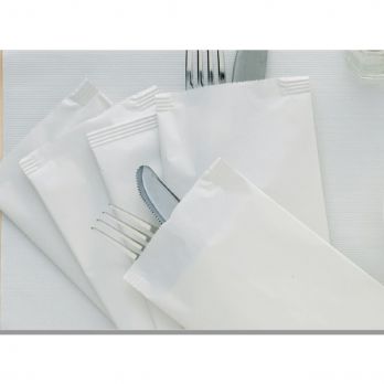 Bestecktasche 25 x 11 cm WEISS mit Serviette (125 Stck)