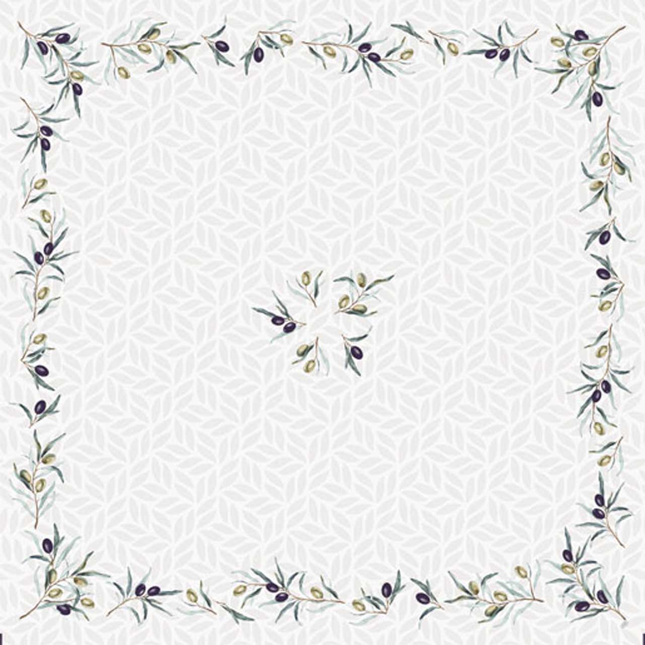 BIO-Tischdecke 84 x 84 cm Olive Garden. Ein elegantes Tischaccessoire mit natürlichem Motiv.