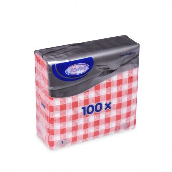 Serviette 33 x 33 cm 1-lagig KARO rot (100 Stck)