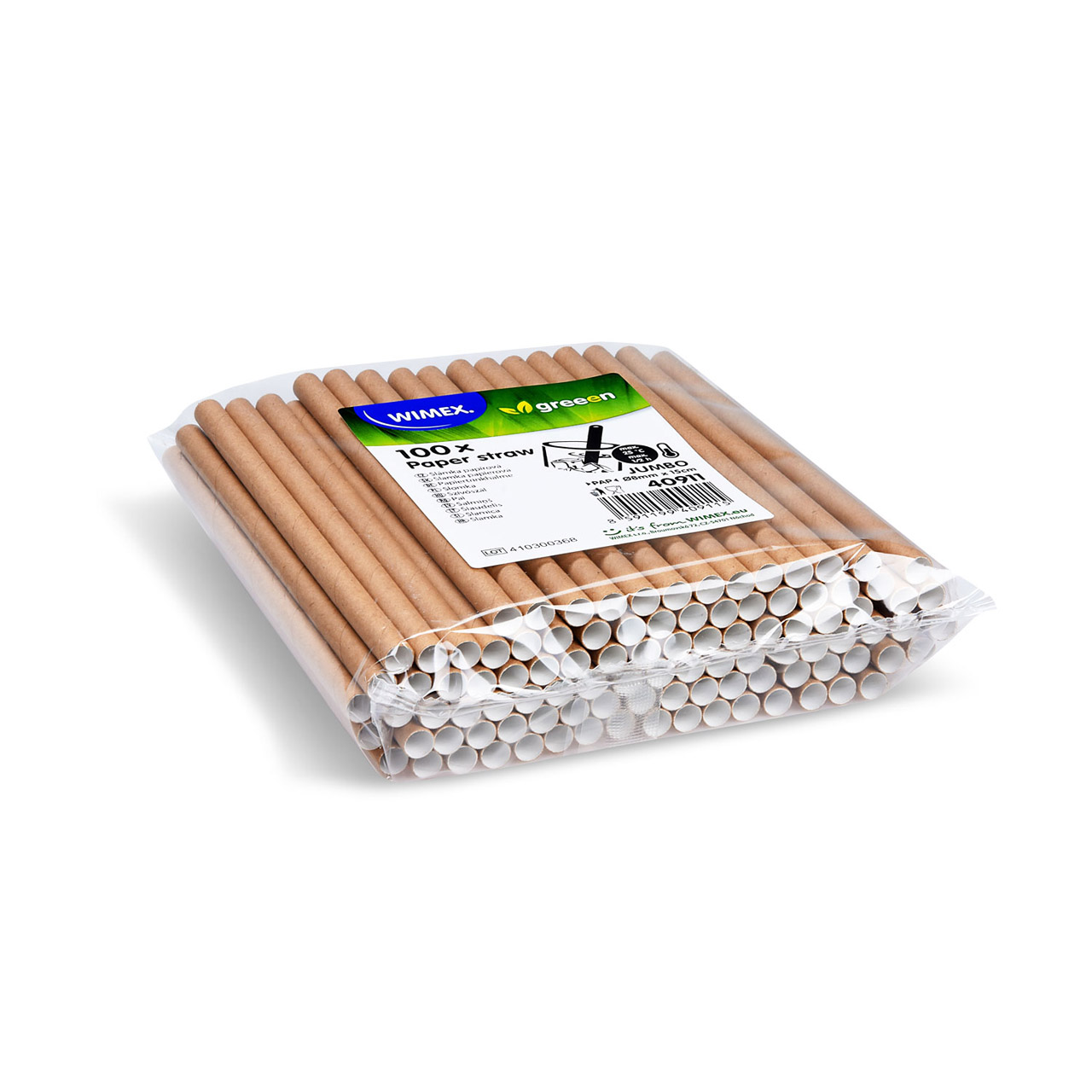 Papierstrohhalme JUMBO natur. Die Packung enthält 100 Stück. Die Länge beträgt 15 cm und der Durchmesser 8 mm.