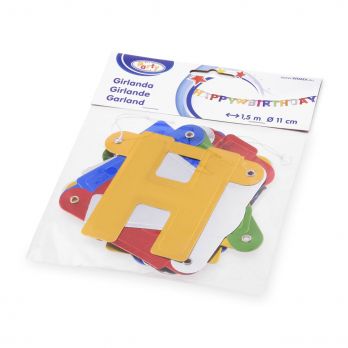 Girlande (PAP/ALU) „HAPPY BIRTHDAY“ 11 cm x 1,5 m.