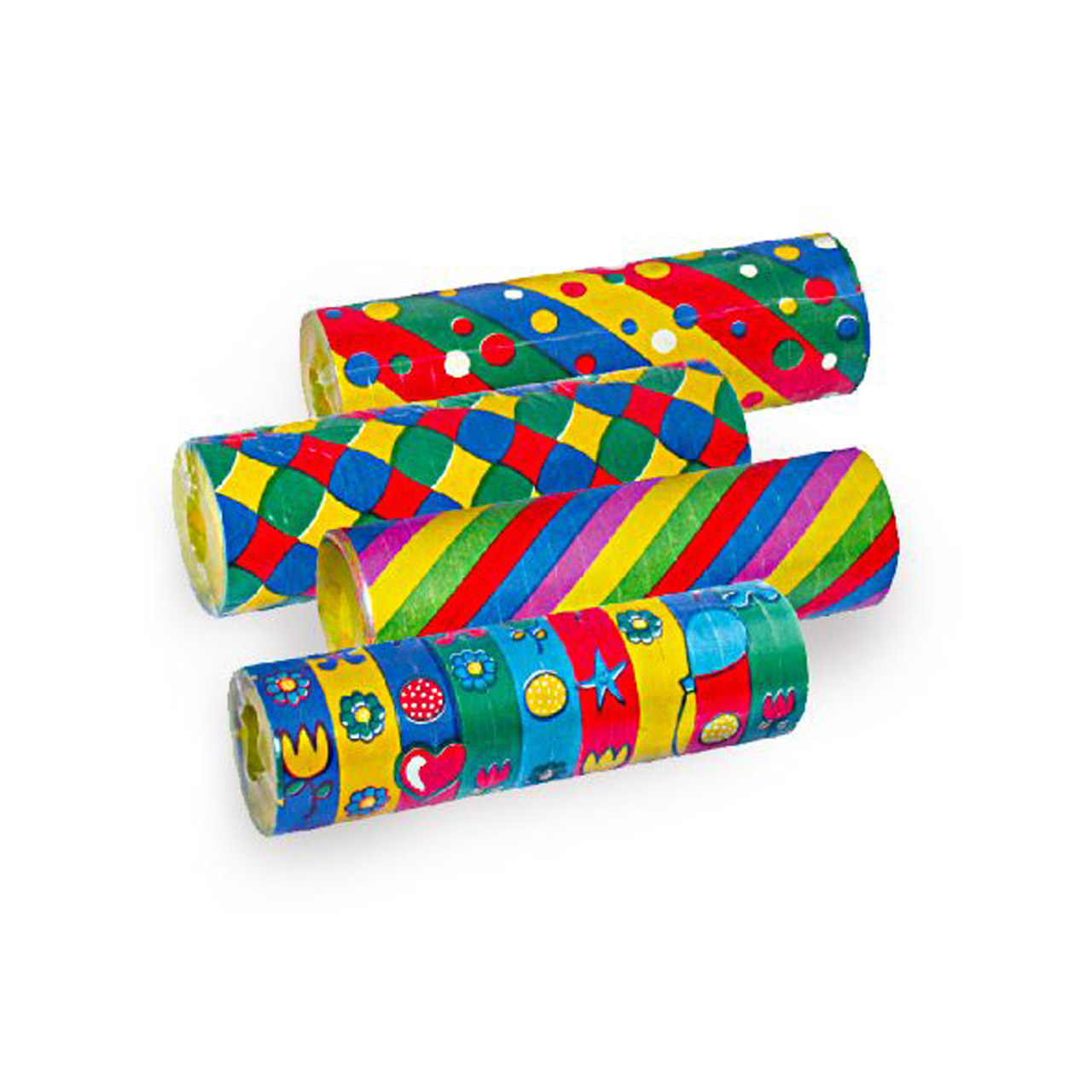 Luftschlangen aus Papier mit verschiedenen Mustern in leuchtenden Farben. Packung mit 18 Streifen (jeder Streifen ist 7 mm breit und 4 m lang).