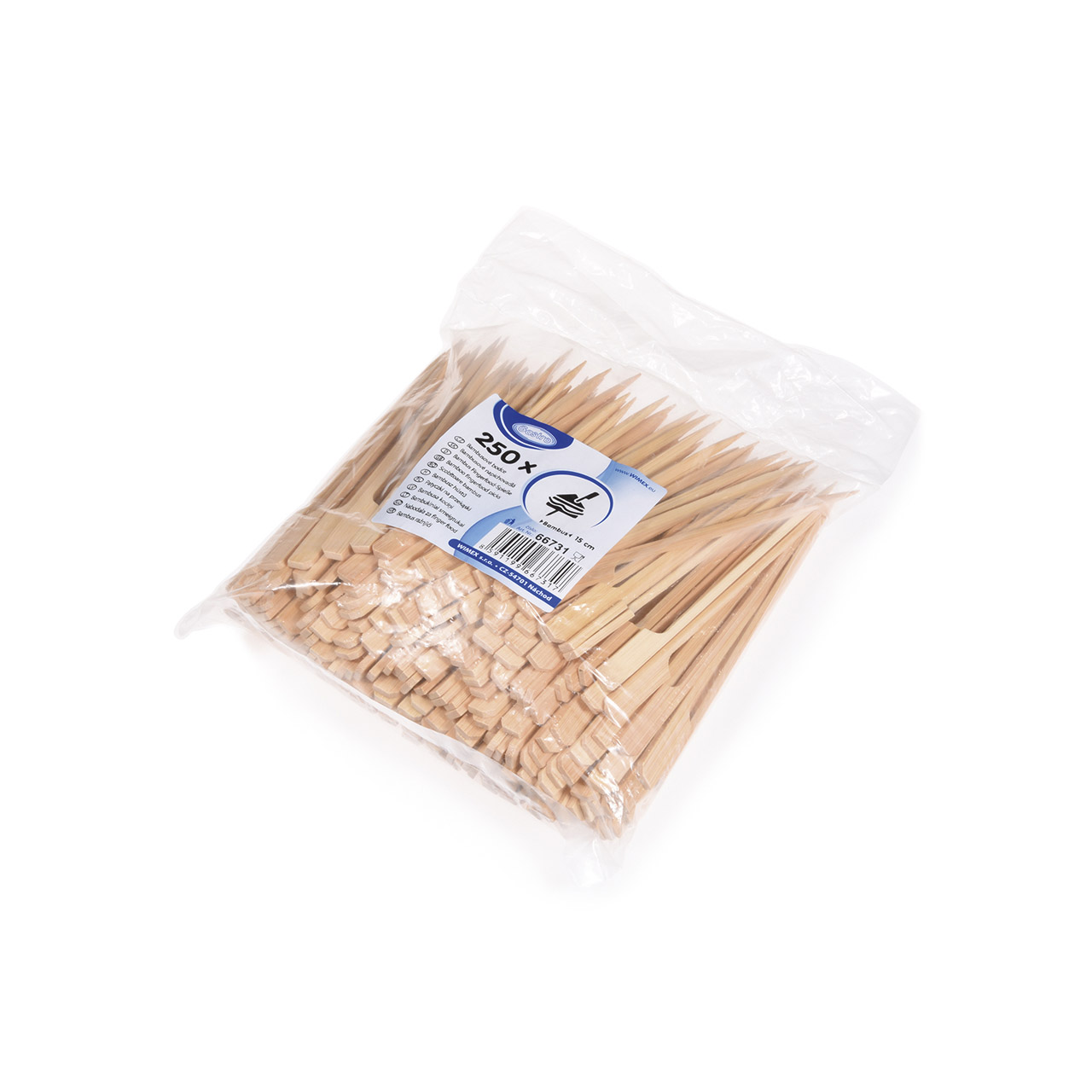Bambusspieße 15 cm lang, geeignet für z.B. Hamburger. Die Packung enthält 250 Stück.