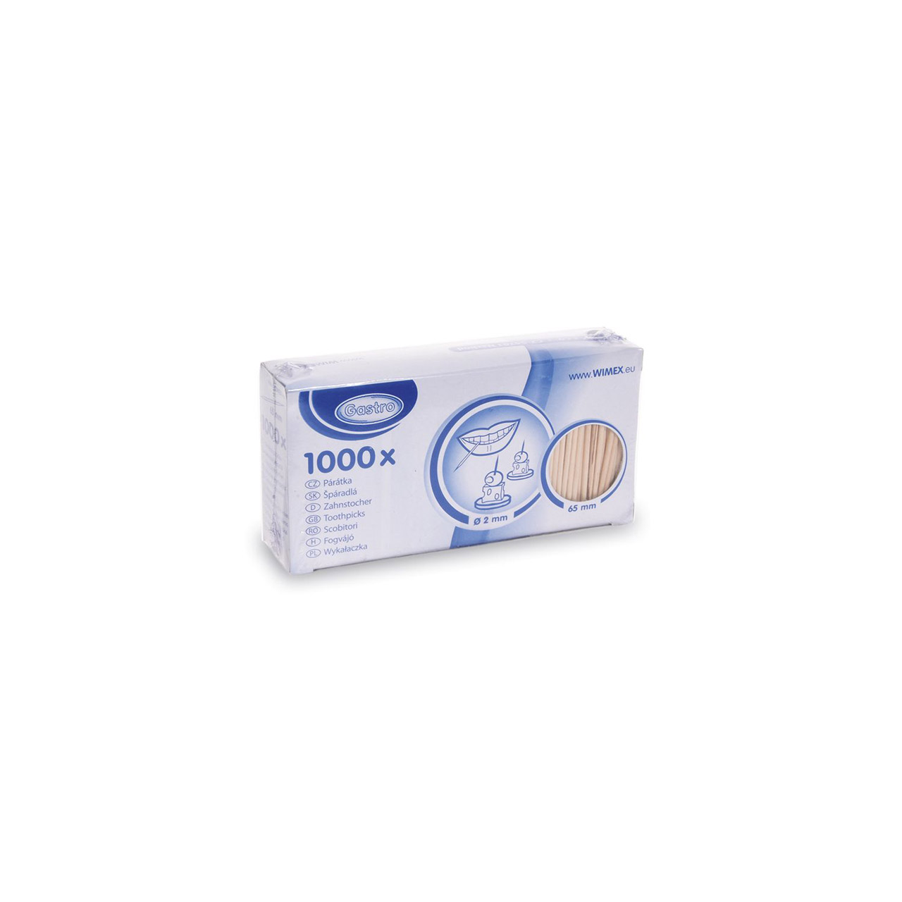 Holzzahnstocher 2 x 65 mm. Die Packung enthält 1000 Stück.
