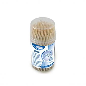 Zahnstocher (Holz FSC 100%) 2 x 65 mm im Becher. In einer Packung mit 190 Stück.