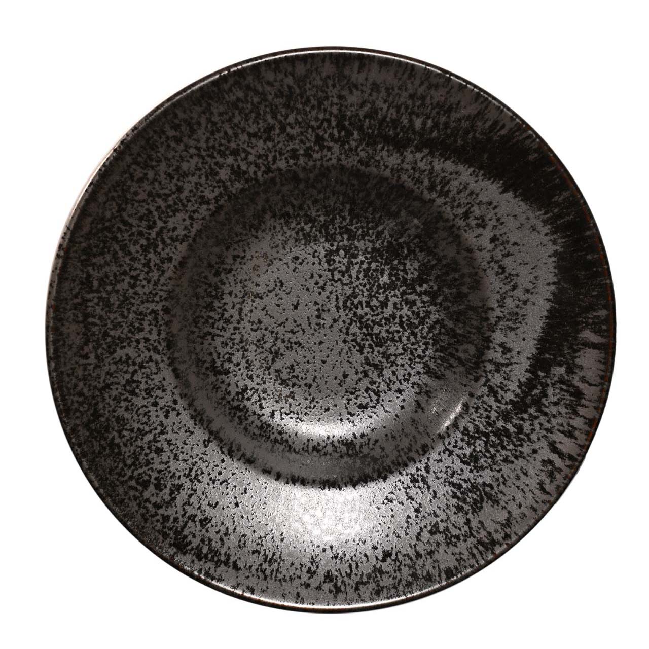 Der Pastateller aus der Serie Ebony mit 27 cm Durchmesser ist aus hochwertigem Porzellan gefertigt und besticht durch sein modernes, unverwechselbares Design. Die elegante schwarze Farbe in Kombination mit der unregelmäßigen Oberflächenstruktur ergibt ein einzigartiges Design, das jedes Stück zu einem Unikat macht und ihm eine stilvolle und luxuriöse Note verleiht. Der Pastateller eignet sich ideal zum Servieren von Pasta, Salaten und anderen Gerichten mit Soße und ist sowohl in der Gastronomie als auch im modernen Esszimmer zu Hause ein echter Hingucker. Porzellan garantiert hohe Langlebigkeit im täglichen Gebrauch, und der Teller ist spülmaschinenfest.
