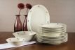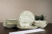 Das Essgeschirr-Set mit floralem Dekor umfasst: 6 flache Teller (25 cm), 6 tiefe Teller (23 cm), 1 Untertasse (0,6 l), 1 Schüssel (20 cm), 1 Schüssel (23 cm) und 1 ovales Tablett (31 cm).