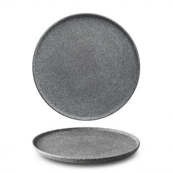 Flacher Granitteller mit 26 cm Durchmesser, matt, dunkler Granitton.
