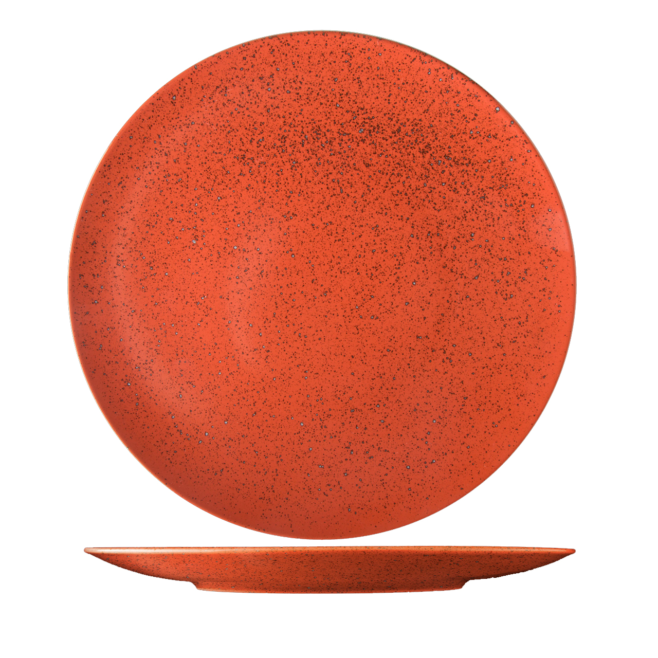 Flacher Teller mit 30 cm Durchmesser. Originelles Dekor dank einzigartiger Fertigungstechnologie.