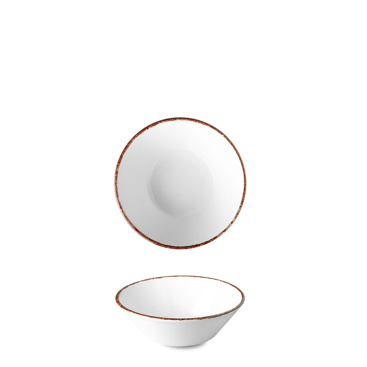 Weiße, konische Schale aus der Porzellanserie OPTIMO mit braunen Linien.