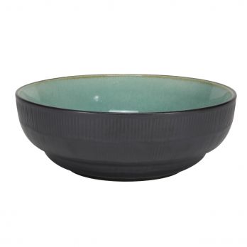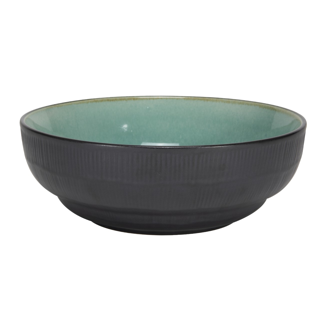 Schüssel mit einem Durchmesser von 17 cm. Unkonventionelles Dekor in blaugrüner Farbe im Inneren der Schale. Aus feiner Keramik.