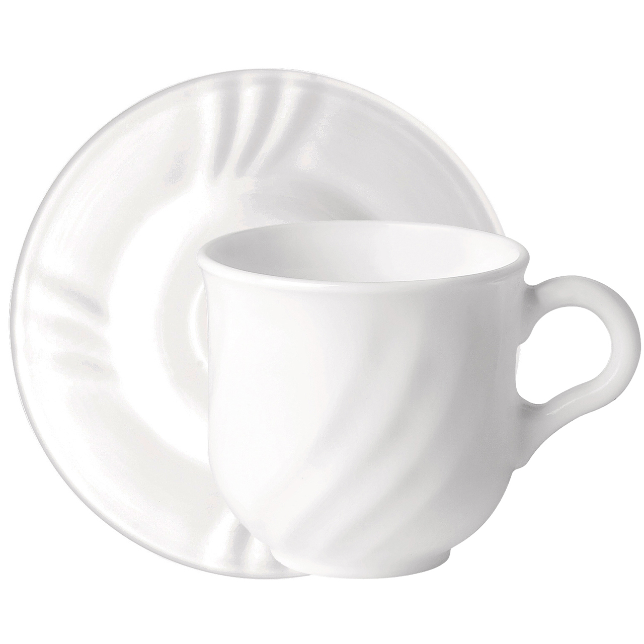 Kaffeetasse mit einem Volumen von 0,25 l mit Untertasse aus Opalglas.