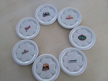 Bierdeckel aus Porzellan ohne Logo. Abbildungen mit Logos dienen nur der Veranschaulichung – auf Wunsch stellen wir Ihnen gerne auch Logos zur Verfügung.