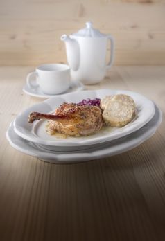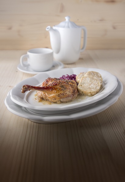 Ovaler Teller mit 32 cm Durchmesser. Serie Benedikt – Porzellan, das Sie in vergangene Zeiten entführt.