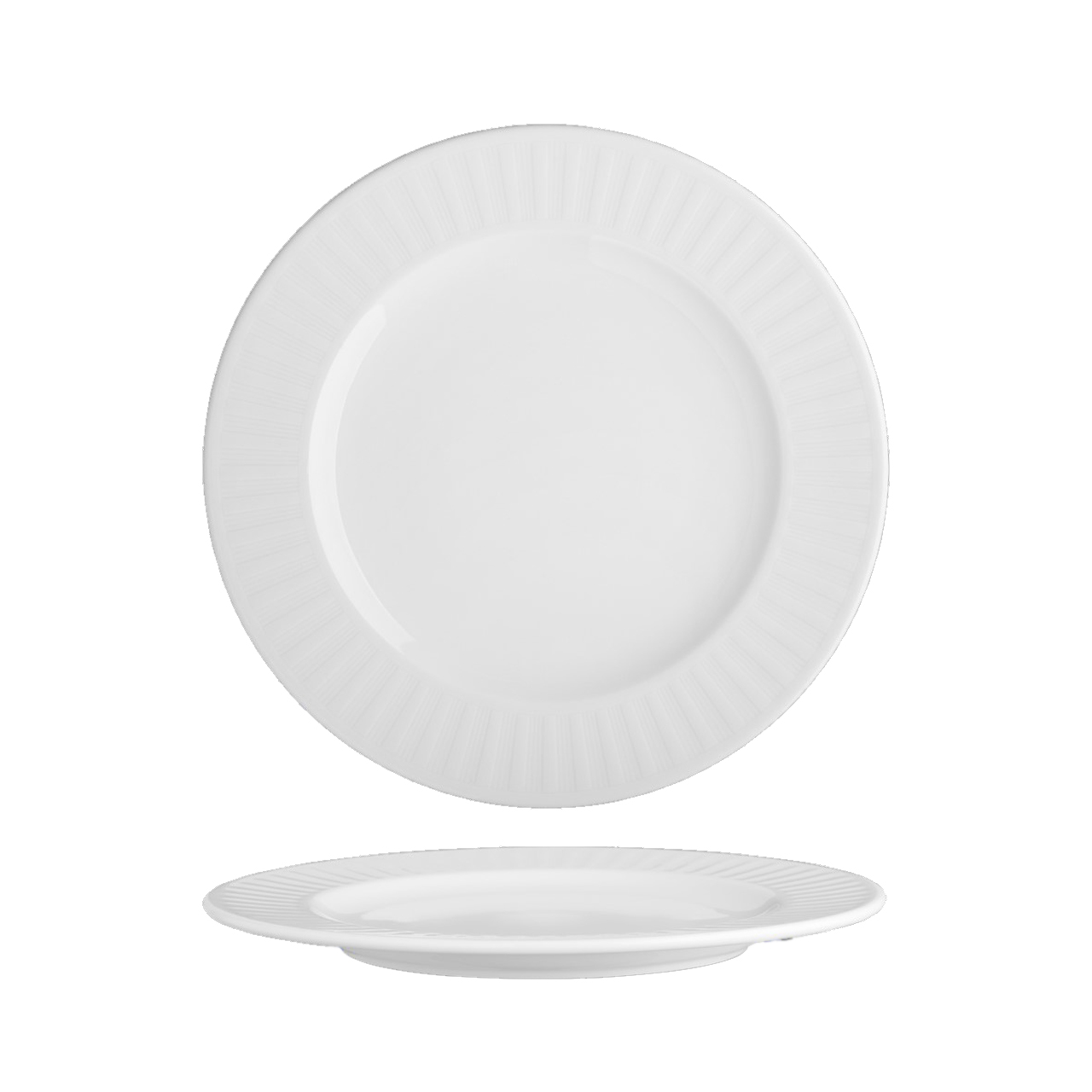 Flacher Teller mit 26 cm Durchmesser. Klare, elegante Linien verleihen Tellern und Schüsseln ein modernes Aussehen.