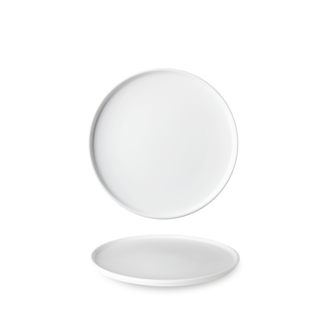 Flacher Dessertteller mit 20 cm Durchmesser und erhöhtem Rand.