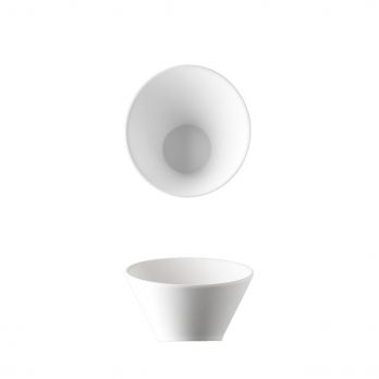 Abgeschrägte Schale mit 17 cm Durchmesser. Einzigartig reines Porzellan für jeden Anlass in origineller Form.