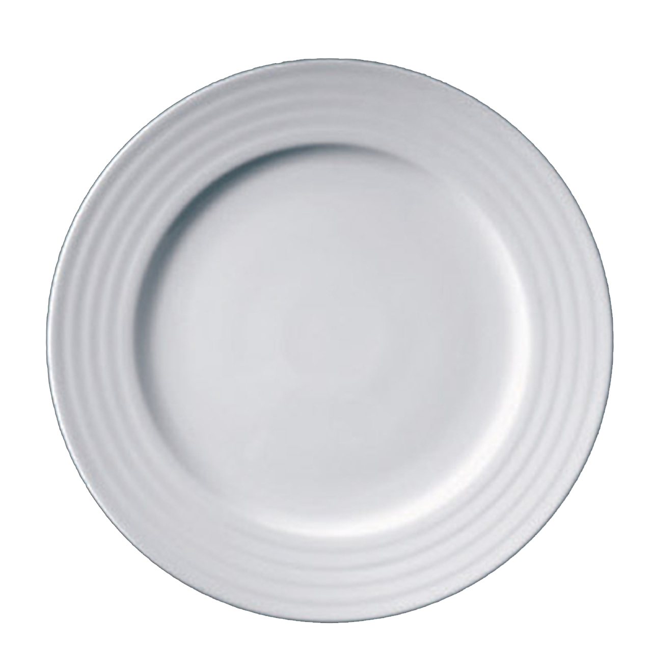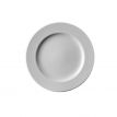 Flacher Teller mit 24 cm Durchmesser und Relief am Rand.