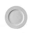 Flacher Teller mit 28 cm Durchmesser und Relief am Rand.