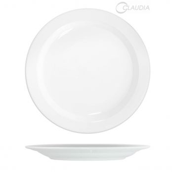 CLAUDIA flacher Teller 26 cm, weißes Porzellan, spülmaschinenfest