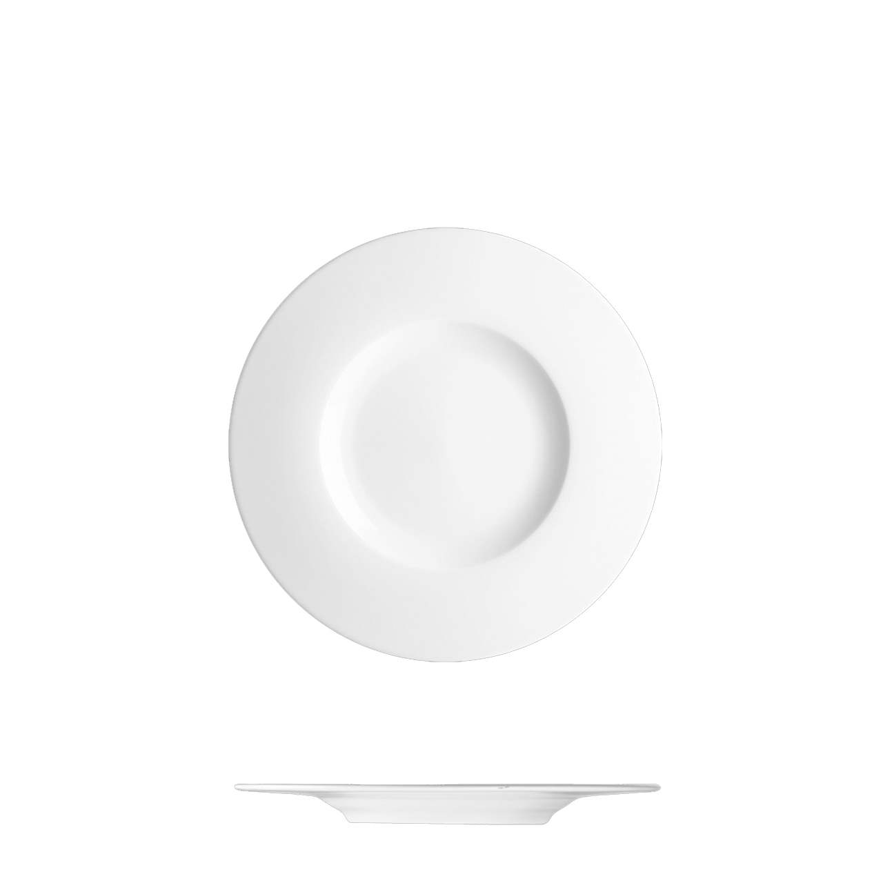 Dessertteller mit 17 cm Durchmesser in modernem Design mit breitem Rand.