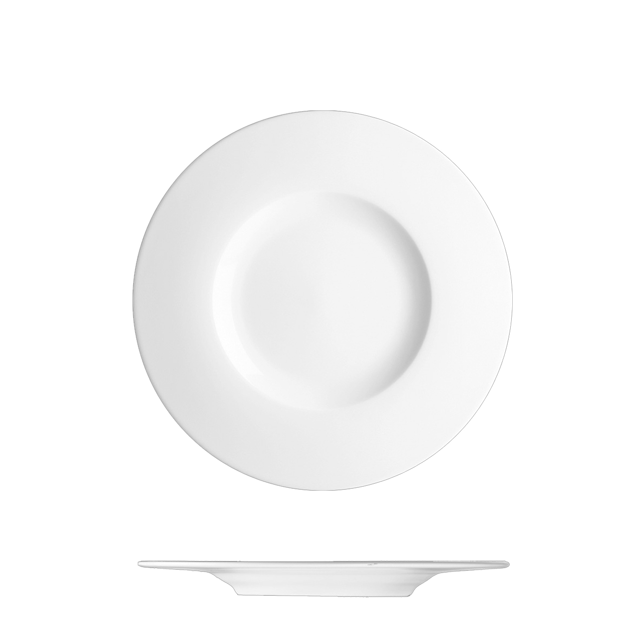 Dessertteller mit 22 cm Durchmesser in modernem Design mit breitem Rand.