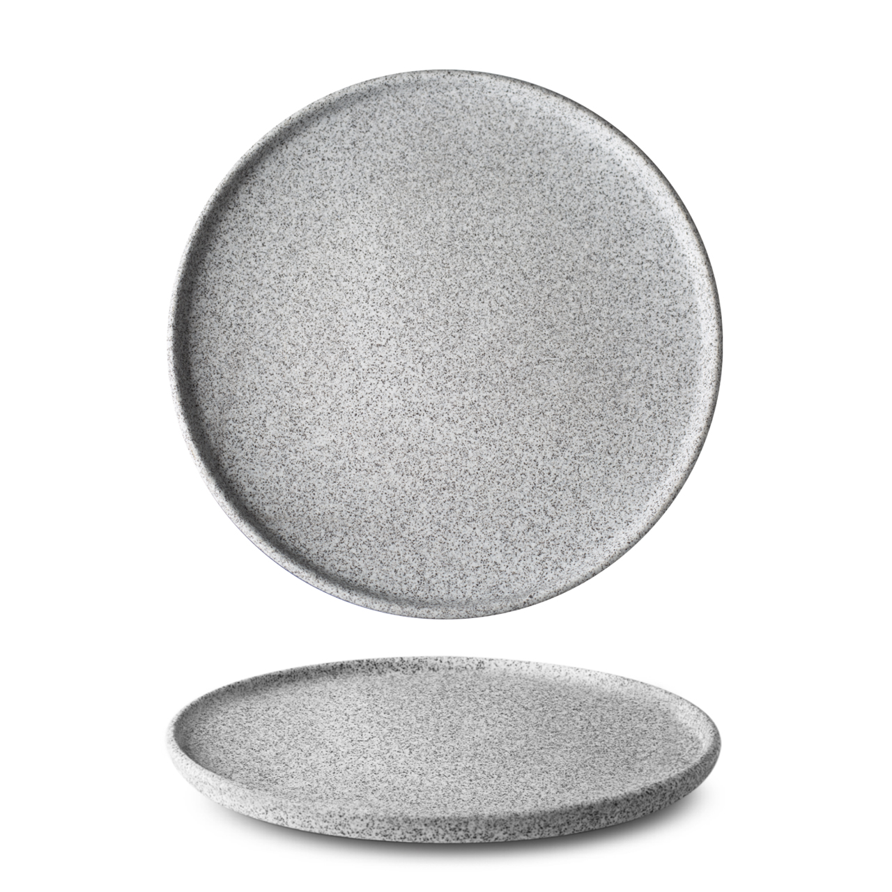 Flacher Granitteller, Durchmesser 26 cm, matt, heller Granitton.