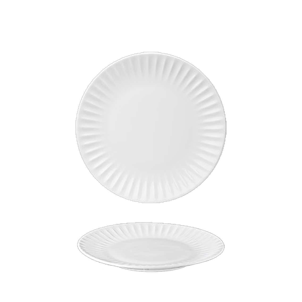 Flacher Teller mit attraktivem Reliefdekor aus weißem Porzellan, Durchmesser 21 cm