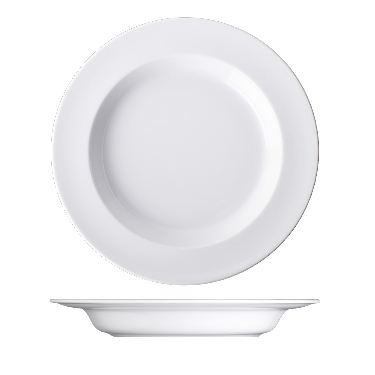 Halbtiefer Teller mit einem Durchmesser von 26 cm. Dank spezieller Details, wie z. B. Arretierungen zum einfachen Aufnehmen von Speisen, ist das ACTIVE-Porzellan ideal für Menschen mit motorischen Einschränkungen und Senioren.