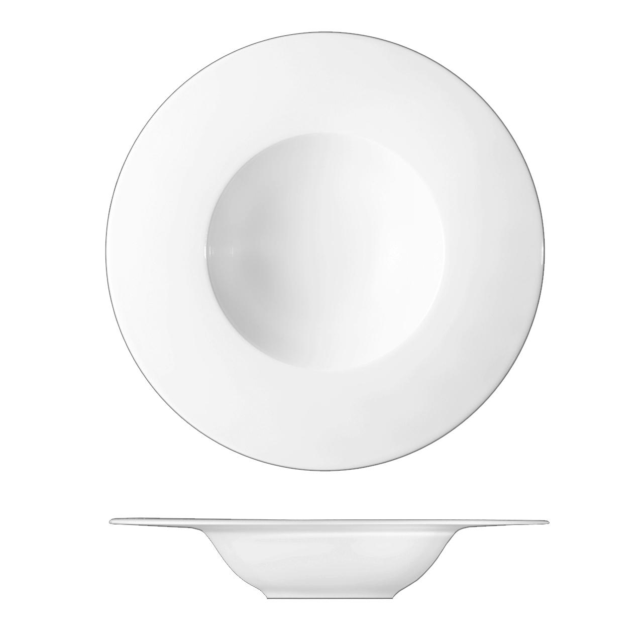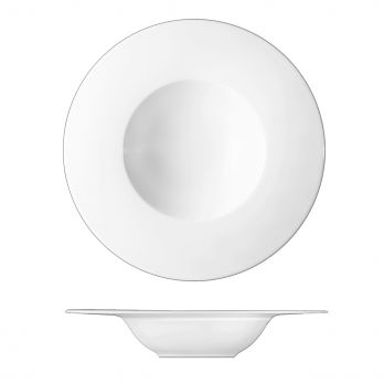 Tiefer Pastateller mit 27 cm Durchmesser, geeignet zum Servieren von Suppen, Pasta und Salaten. Modernes Design mit breitem Rand.