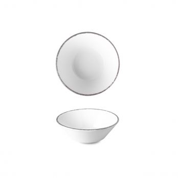 Weiße, konische Schale aus der Porzellanserie OPTIMO mit grauen Linien.
