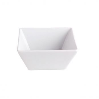 Quadratische Porzellanschale mit einem Durchmesser von 11,5 cm, geeignet für Bankette und Catering.