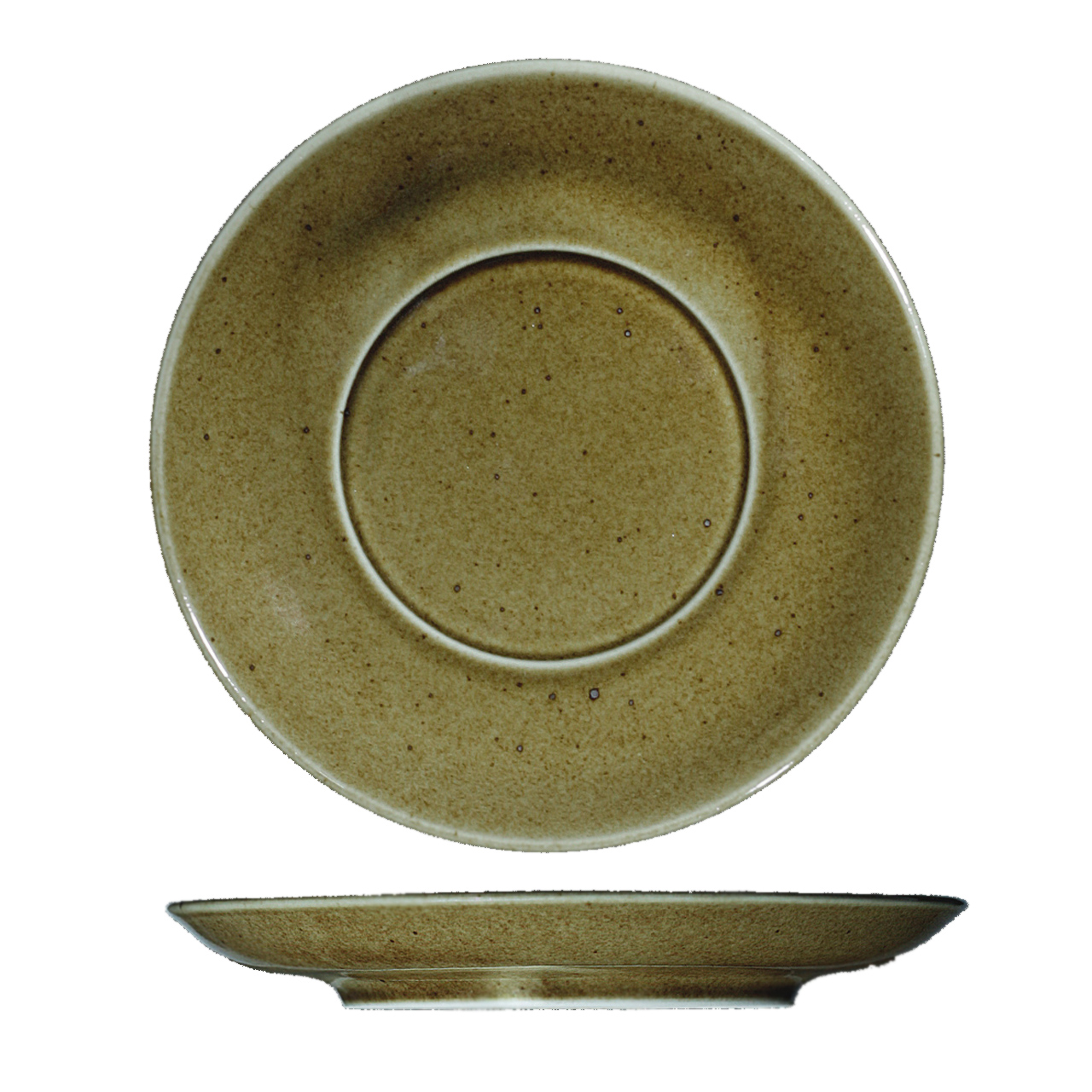 Untertasse mit 17 cm Durchmesser für eine Schüssel/Suppentasse, bestellbar unter den Nummern 100011455 und 100018091. Die originelle Glasur passt ideal zu Interieurs im Landhausstil.