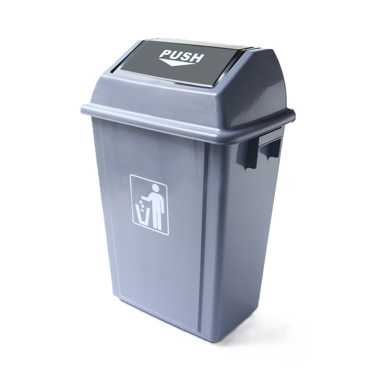 Wirtschaftlicher Abfallbehälter für den täglichen Gebrauch aus Polypropylen, zentraler Deckel mit beidseitiger Öffnung. Korbvolumen 40 l. 41 x 27,5 x 61 cm